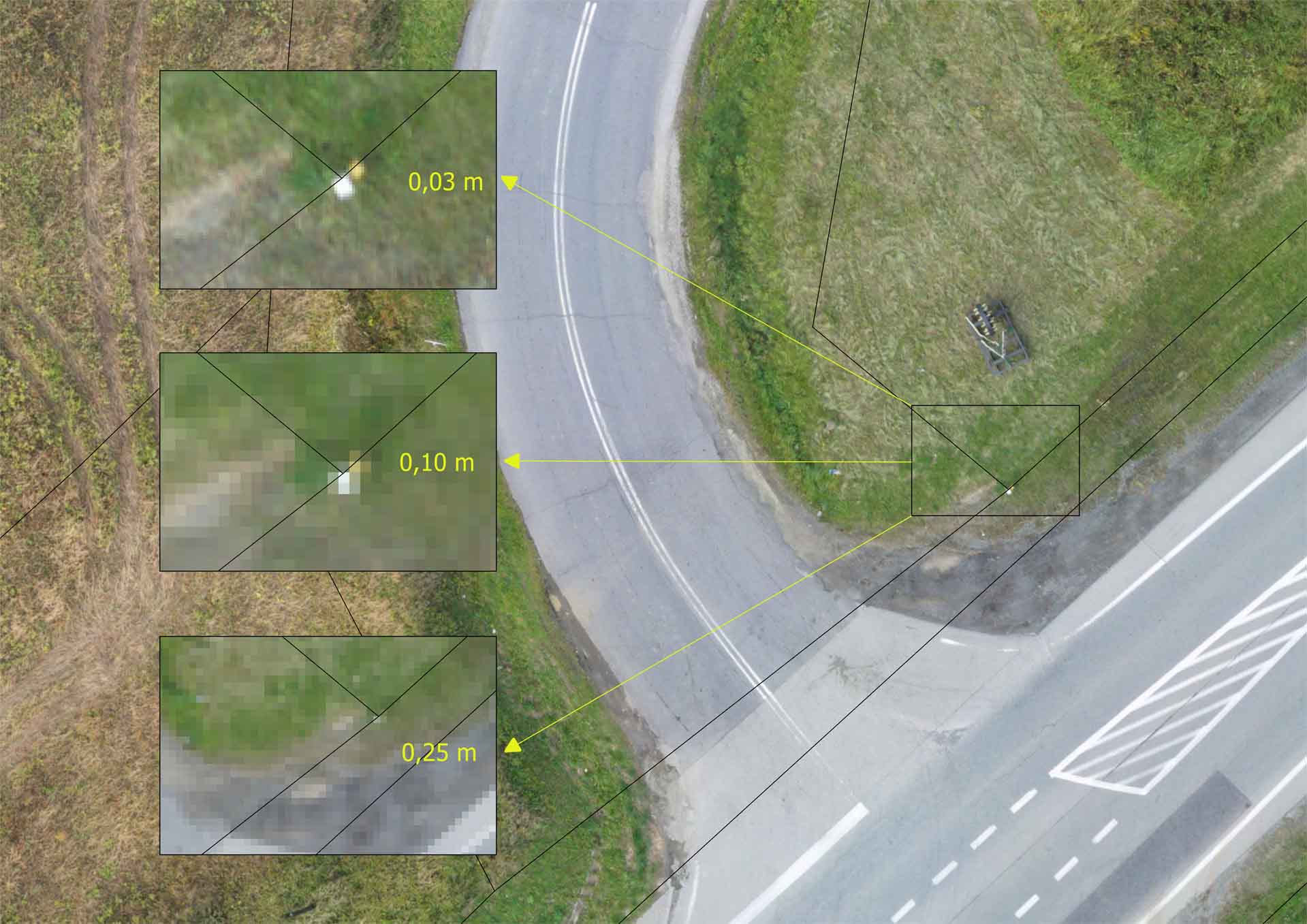 Aktualna ortofotomapa może posłużyć między innymi do: aktualizacji mapy do celów prawnych, wywiadu terenowego, kontroli postępu prac związanych z budową dróg. Dron również sprawdza się świetnie jako precyzyjne narzędzie pomiarowe powierzchni oraz objętości.